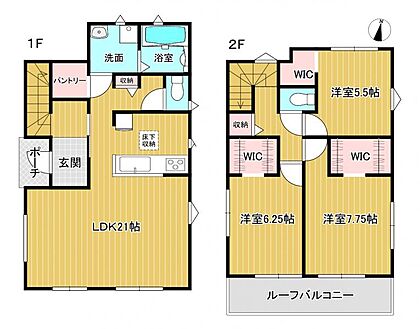 2階 各部屋にウォークインクローゼットがあるのでお部屋がスッキリ片付きます