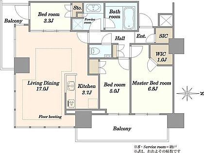 | 設備・サービス | ●床暖房 ●追焚機能 ●浴室乾燥機 ●ウォークインクローゼット ●エレベーター |