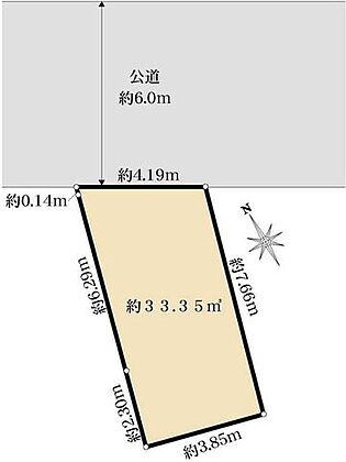 | 土地面積/坪(坪単価) | 33.35m2/10.11坪(492.60万円) | 代表的な接道 | 一方 公道 北東 6m ※詳細は備考欄をご確認ください |