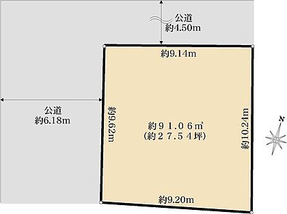 | 土地面積/坪(坪単価) | 91.06m2(実測)/27.59坪(724.90万円) | 代表的な接道 | 角地 公道 北 4.5m、西 6.1m ※詳細は備考欄をご確認ください |