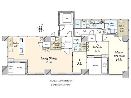 | 設備・サービス | ●床暖房 ●追焚機能 ●浴室乾燥機 ●トランクルーム ●ウォークインクローゼット ●エレベーター |