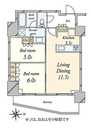 | 間取り | 2LDK | 専有面積 | 60.00m2(壁芯) |
