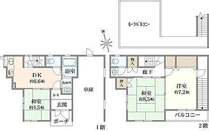 | その他 | ●公営水道 ●都市ガス ●床下収納 ●駐車場あり ●所有権 ●トイレ2ヶ所以上 ●屋上・ルーフバルコニー ●屋上 ●2階建て ●鉄骨系 ●前面道路6m以上 ●平坦地 |