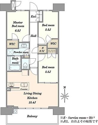 | 設備・サービス | ●床暖房 ●追焚機能 ●浴室乾燥機 ●ウォークインクローゼット ●バリアフリー ●エレベーター ●キッズルーム |