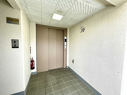 写真右手:管理員室、オートロック式エントランス