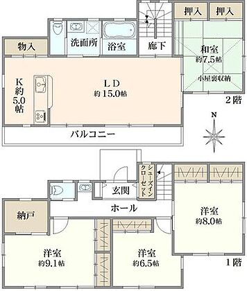 間取り 4SLDK 構造及び階数 木造 2階建て