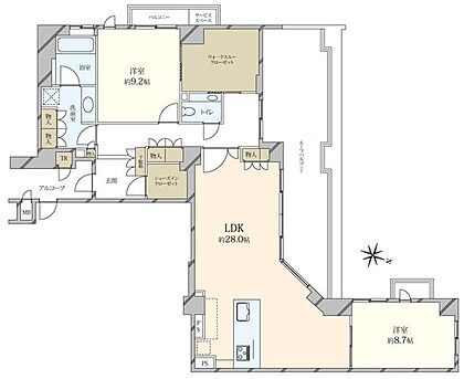 間取り 2LDK 専有面積 122.79m2(壁芯)
