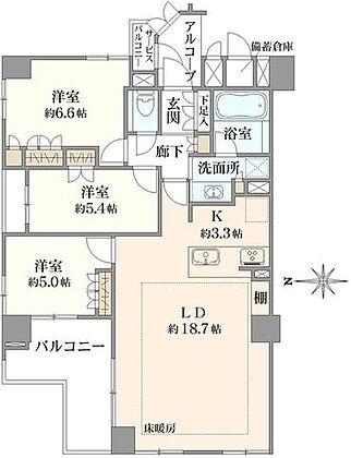 | 設備・サービス | ●床暖房 ●追焚機能 ●浴室乾燥機 ●エレベーター |