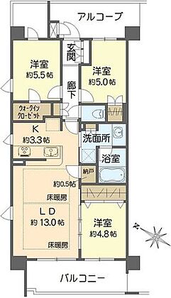 | 設備・サービス | ●床暖房 ●追焚機能 ●浴室乾燥機 ●ウォークインクローゼット ●エレベーター |
