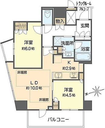 | 設備・サービス | ●床暖房 ●追焚機能 ●浴室乾燥機 ●トランクルーム ●エレベーター |