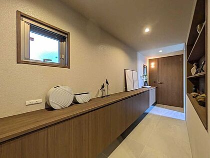 写真、絵画や賞状など飾ることのできるギャラリー風の下部収納+ニッチ