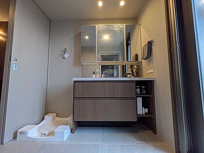 3面鏡・下部収納も設けられた収納スペース。(洗濯パン付き)