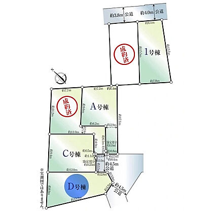 【接道】 一方 ( 公道 南東 4.5m ) ■全6棟今回販売4棟(D号棟)■建築基準法第22条指定区域 ■建築確認番号:第24KAK建確04023号 ■机上分筆につき面積増減有 ■引渡しまでに売主にて地目を宅地に変更 ■駐車2台可(車種による制限有) |