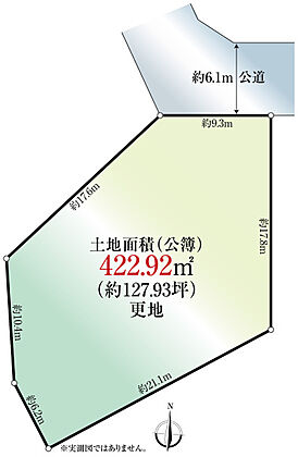 | 土地面積/坪(坪単価) | 422.92m2(登記簿)/128.16坪(20.10万円) | 代表的な接道 | 一方 公道 北 6.1m ※詳細は備考欄をご確認ください  |