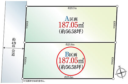 | 備考 | 【接道】 ( 公道 西 4.9m ) ●全2区画:今回販売2区画(B区画) ●絶対高さ制限10m、敷地面積の最低限度70平米 ●現況:古屋有(解体・更地渡し) ●ガス:都市ガス(敷地内引込無、引込費用は買主様の負担となります) ●水道:公営水道(敷地内引込無、引込費用は買主様の負担となります) ●汚水:公共下水(敷地内引込無、引込費用は買主様の負担となります) ●雑排水:公共下水(敷地内引込無、引込費用は買主様の負担となります) ●分筆時(引き渡し時)、土地面積に多少の差異が生じる場合があります 更地渡し | ||
