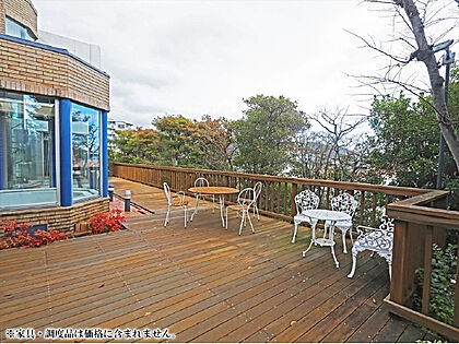 広がる空と開放的ながらプライバシーを確保したウッドデッキテラス♪