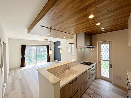 カウンターキッチンは料理の為の配慮をたくさん散りばめてあります。家事をしながらお子様の様子を見守れる安心感もあります。