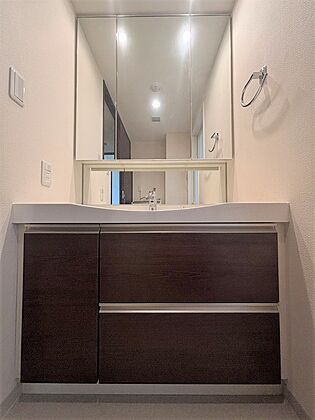 身支度に欠かせないアメニティを豊富にキープできるミラーキャビネット