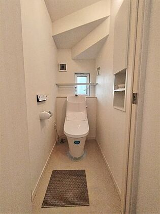 ■一体型トイレは全体的に凹凸が少なく、お掃除ラクラク♪スッキリとした印象を与えます