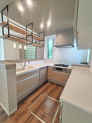 ■食洗機や浄水器を備えた使い勝手のよいシステムキッチン♪床下収納には長持ちする食料品や頻繁に使用しない調理器具も収納出来ます♪