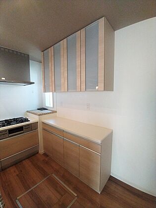 ■キッチンの扉と同デザインのカップボード採用!すっきりとした空間を保てます。