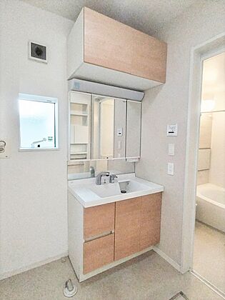 ■左右から身だしなみを確認できる三面鏡化粧台♪収納もついています◎