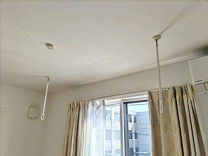 ■2階の約5.9帖の洋室には天井付けの室内干しがついています。雨の日や夜間でも気にせず洗濯物を干せて、天候に左右されることもありません。