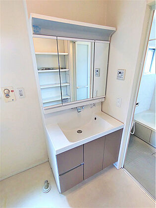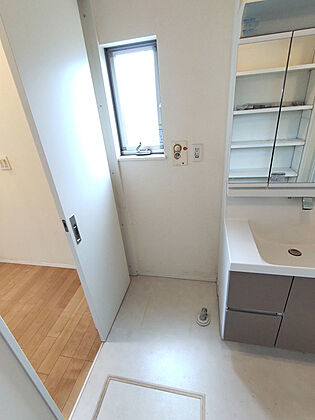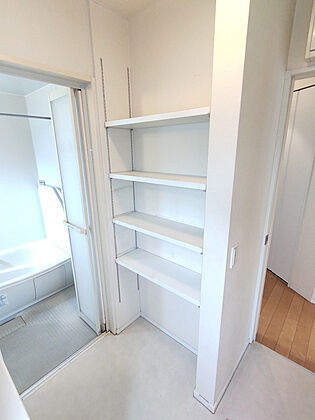 洗面室の収納棚リネン等の収納に便利です。