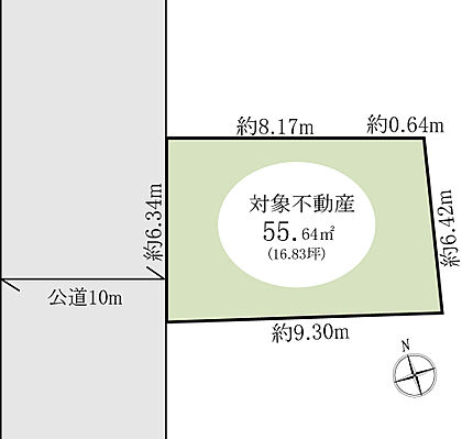 | 土地面積/坪(坪単価) | 55.64m2(実測)/16.86坪(40.30万円) | 代表的な接道 | 一方 公道 西 10m ※詳細は備考欄をご確認ください |