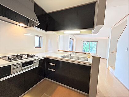 【キッチン-動線】L字型キッチンのため、動線が短く、スムーズに家事をこなすことができます!収納力のあるキッチンのため、スッキリとした状態でお料理できるのもうれしいポイントです!(2025年8月撮影)