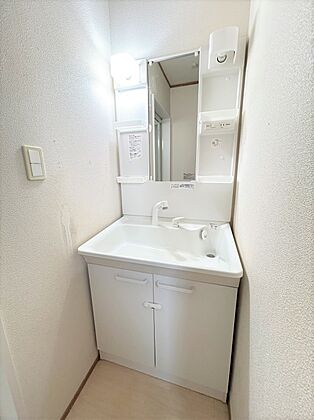【洗面台-収納力】収納力のある洗面台。ストック品や化粧品などたっぷり収納することができます!小物でごちゃつきがちな洗面台もスッキリした状態に保つことができます。(2025年8月撮影)