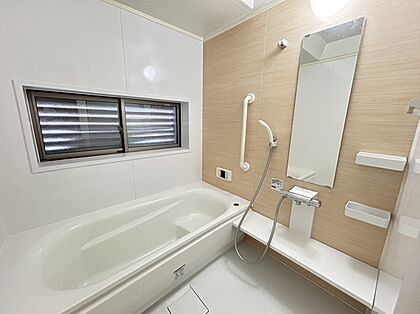 【浴室-リラックス】浴槽内にステップがあるため、半身浴もお楽しみいただけます!さらに窓を少し開けて外気温を取り入れることもできますので、ゆっくりバスタイムをお楽しみいただくこともできます。
