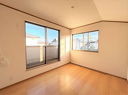 【洋室-約7.2帖】約7.2帖のゆとりある主寝室でございます。二面採光のため、朝日をはじめ、暖かい陽射しが空間を包み込みます。バルコニーにも出れますので、心地よい風を感じるのもおすすめです!