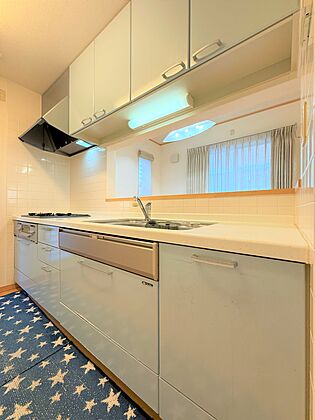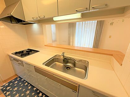 【キッチン-楽】作業スペースにゆとりがあるため、お料理や洗い物がしやすいキッチンとなっております。また、オープンキッチンのため、お子様を見守りながら家事ができるのも、うれしいポイントです!