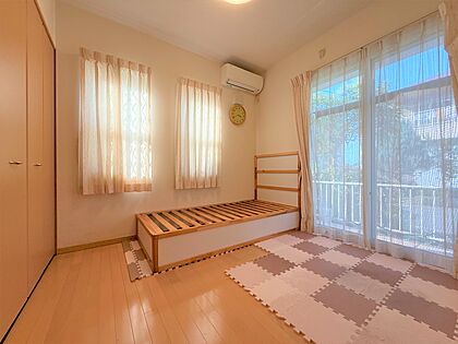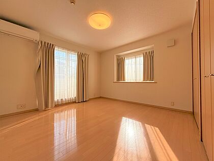 【主寝室-8.5帖】ダブルベッドを置いてもゆとりのある主寝室でございます。ご夫婦のお部屋として、兄弟姉妹の部屋として利用するのもおすすめです!(2025年8月撮影)