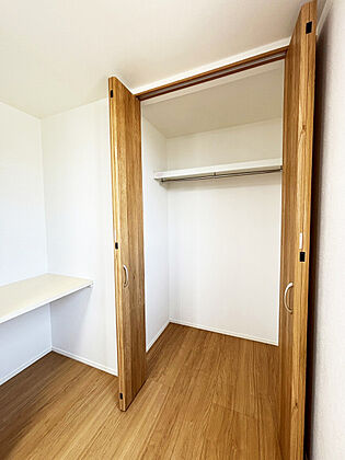 棚やハンガーパイプが付いた使いやすい設計のクローゼット。