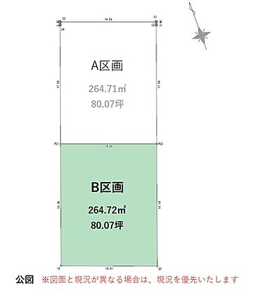 【接道】 一方 ( 公道 南 6m ) ※引渡し時地目:宅地 ※A区画・B区画のA区画・B区画のいずれもの売買が確定してからの(1)・(2)の手続きとなります。 (1) 農地法5条許可申請が必要となります。 (2) 分筆、造成工事完了後のお引渡しとなります。 ※(株)ホーメックスの建築条件付きとなります。 ※上水・下水・都市ガスは前面道路より引込み後のお引渡し(売主負担) ※土地面積は、分筆により多少の誤差が生じる場合があります。 ※仲介手数料はかかりません。 法第22条指定区域 建築条件付き (建築条件付きとは) |