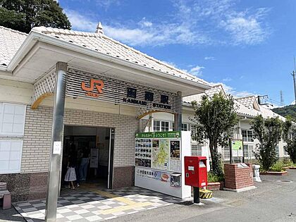 可愛らしいレトロ感ある函南駅。駅まで歩いて13分ほど
