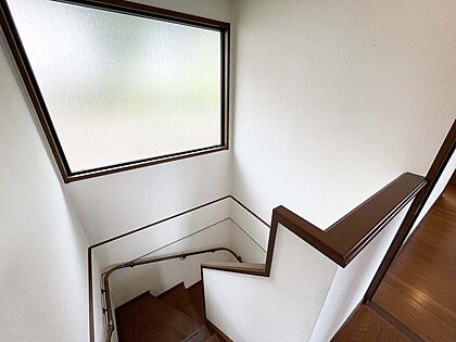 大きな明かり取りがあるので、北側に配した階段部分も明るい