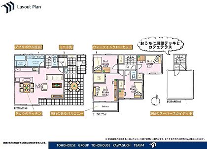 〜立派な間取りのご提案〜土地の広さを利用し、中庭やウッドデッキなど、贅沢な間取りをご紹介いたします。もちろん間取りの変更も自由自在に可能です。お好きな設備、お好きな空間、おすきなカラー、ご相談ください