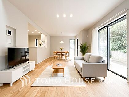 明るく開放的な空間が広がるLDK。室内には豊かな陽光が注ぎ込み、爽やかな住空間を演出。
