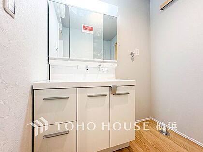 ハンドシャワー付きの洗面化粧台。朝の忙しい時間にも、手早く身支度を整えられそうです。