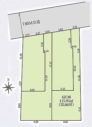 | 土地面積/坪(坪単価) | 115.93m2(実測)/35.13坪(105.00万円) | 代表的な接道 | 一方 公道 北 7m ※詳細は備考欄をご確認ください |