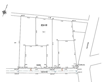 | 土地面積/坪(坪単価) | 270.55m2(登記簿)/81.98坪(38.80万円) | 代表的な接道 | 一方 公道 南 3.5m ※詳細は備考欄をご確認ください |
