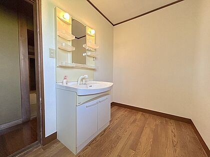 化粧台はやっぱり色が一番。シャワーヘッド付きの収納充実タイプです。