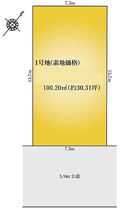 | 土地面積/坪(坪単価) | 100.20m2(登記簿)/30.36坪(82.30万円) | 代表的な接道 | 一方 公道 南東 5.9m ※詳細は備考欄をご確認ください |