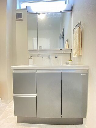 たっぷりの収納を設けたシャワー付洗面台で快適な暮らし。