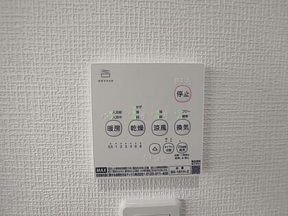 【浴室乾燥機操作パネル】お洗濯ものもカラッと乾くのがうれしい、浴室乾燥機。換気機能も良好なので、その快適さにびっくりすると思います。