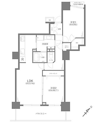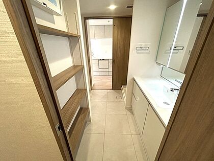 玄関側の廊下とキッチンと2WAYの脱衣所