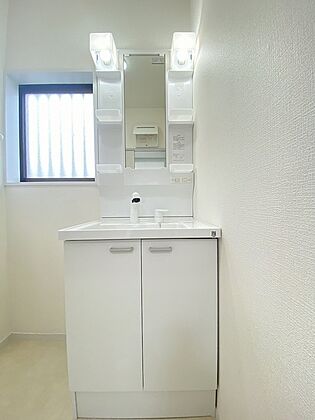 化粧台はやっぱり色が一番。シャワーヘッド付きの収納充実タイプです。